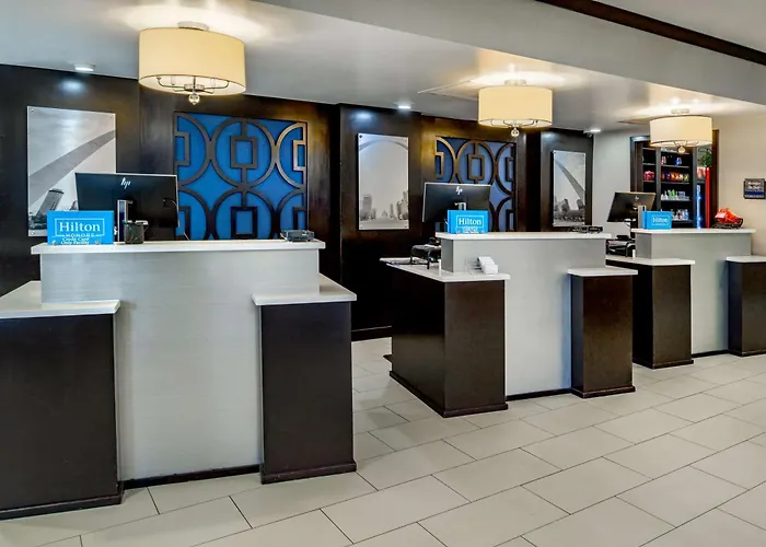 Das 4-Sterne-Hotel Embassy Suites By Hilton St Louis Airport Bridgeton befindet sich in einer Entfernung von 4 km vom James S. McDonnell Prologue Room und verfügt über 162 Zimmer. Hier können Gäste auch einen Swimmingpool, die Sauna und Spa-Therapie genießen.